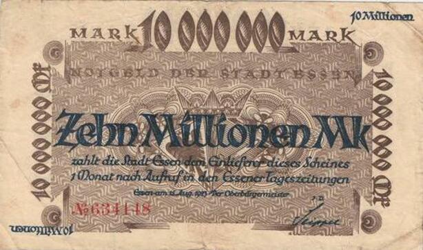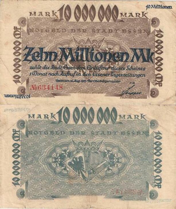 Q4110 Banknote Germany 10 Millionen Mark Arms Essen 1923 Notgeld - Make Offer