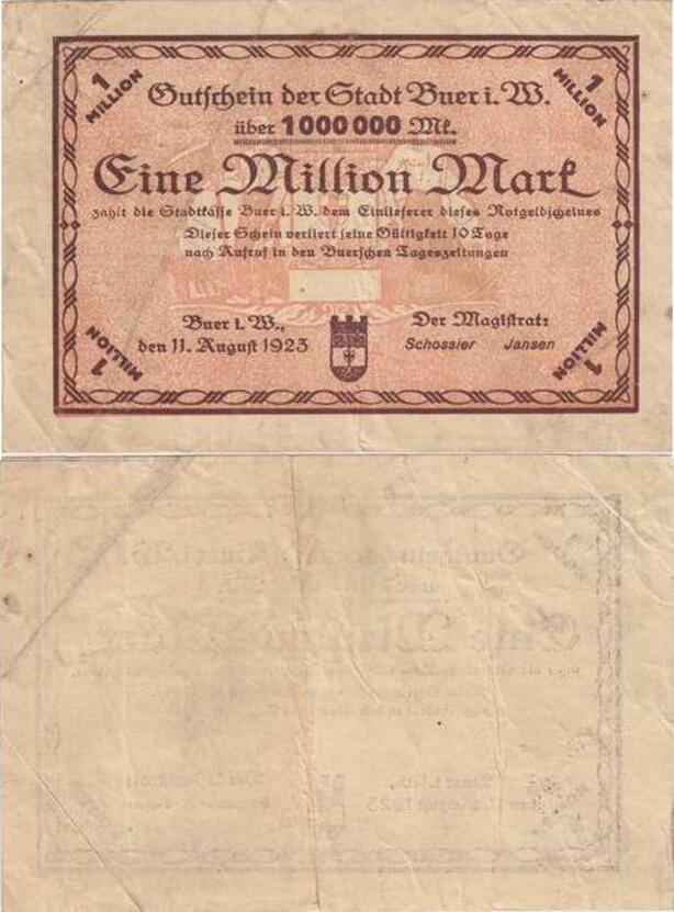 Q4111 Banknote Germany Buer 1 Million Mark Notgeld 1923 - Make Offer