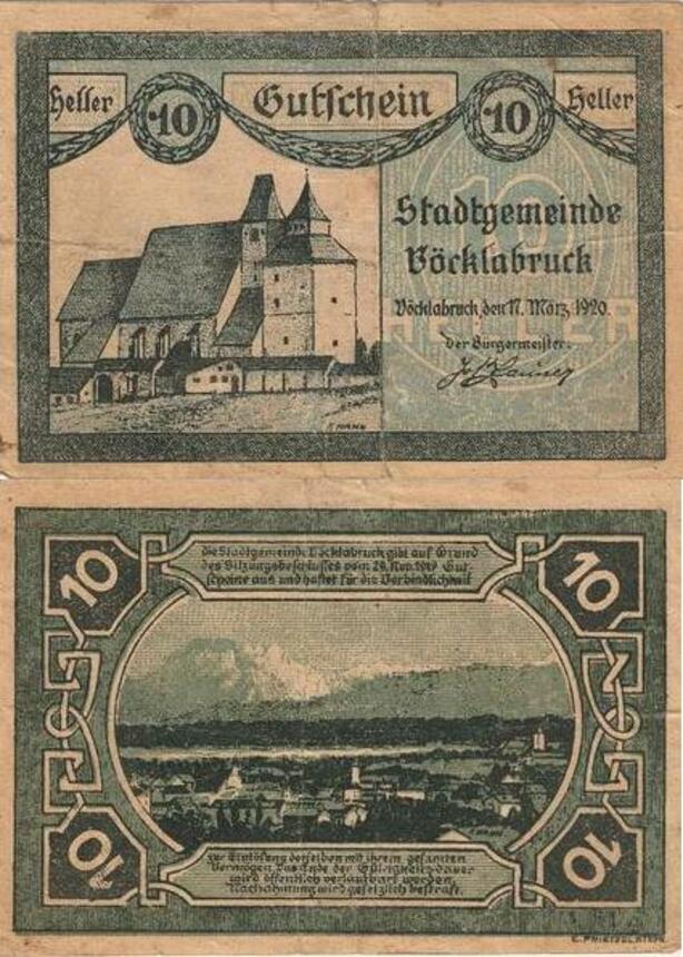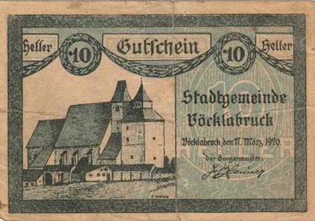 Q4114 Banknote Austria 10 Heller City Stadtgemeinde Vöcklabruck Notgeld 1920