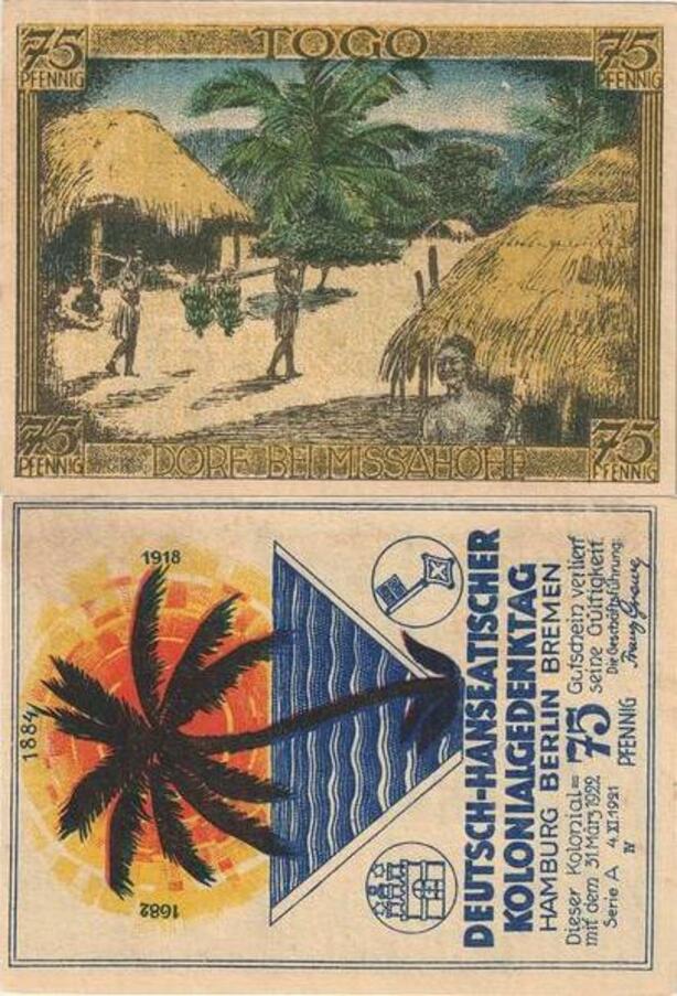 Q4117 Banknote Germany Togo 75 Pfennig Dorf Beimissa hohe 1921 - Offer