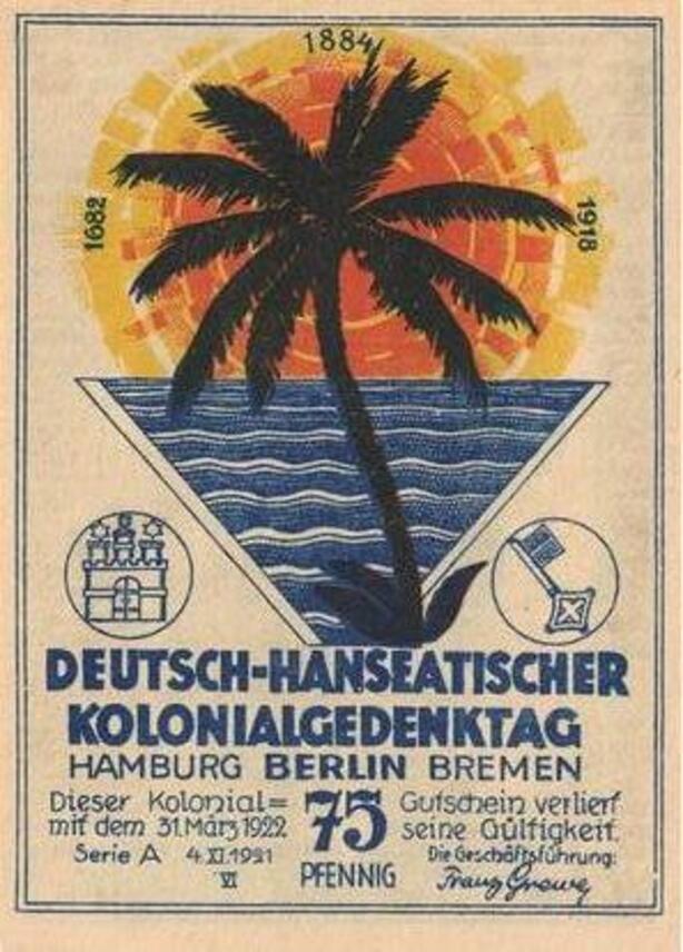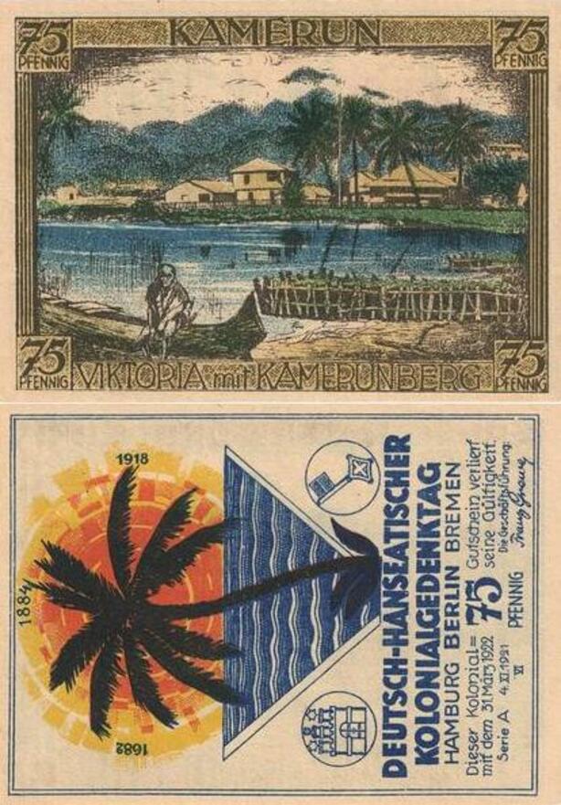 Q4118 Banknote Germany Kamerun 75 Pfennig Viktoria mit Kamerunberg 1921 AU