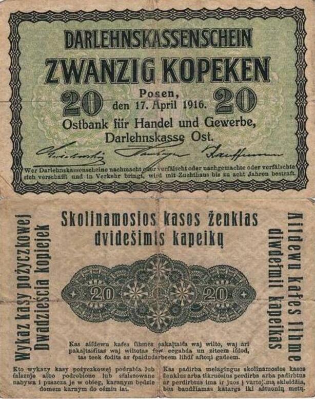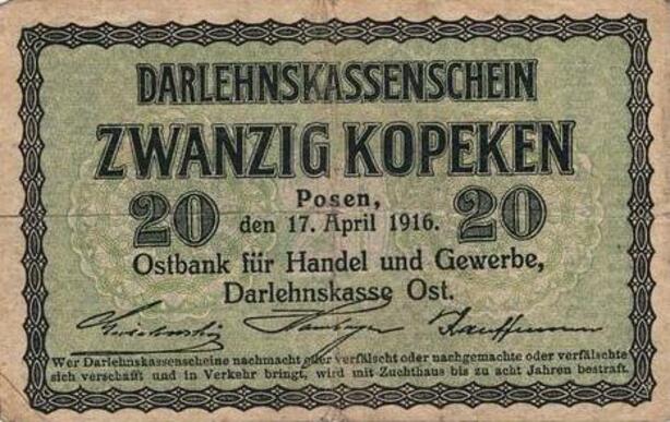 Q4132 Banknote Germany Posen 20 Kopeken Darlehenskassenschein 1916 - Make Offer
