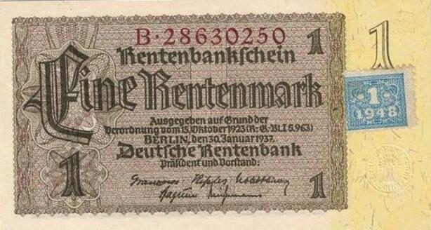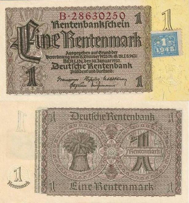 Q4140 Banknote Germany Berlin 1 Rentenmark Rentenbankschein 1948 Stamp 1937 UNC