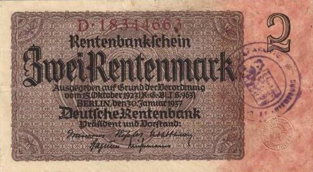 Q4145 Banknote Germany Berlin 2 Rentenmark Rentenbankschein Stamp 1937 - M Offer