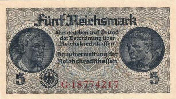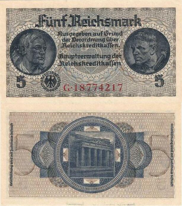 Q4153 Banknote Germany 5 Reichsmark Reichstag entrance 1940-1945 AU - Make Offer