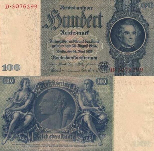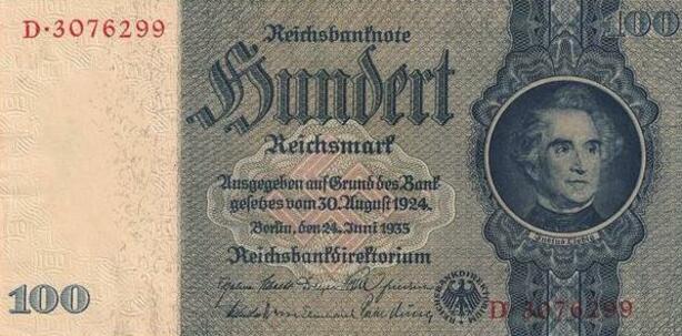 Q4169 Banknote Germany Berlin 100 Reichsmark Justus Liebig Error Philigram 1935