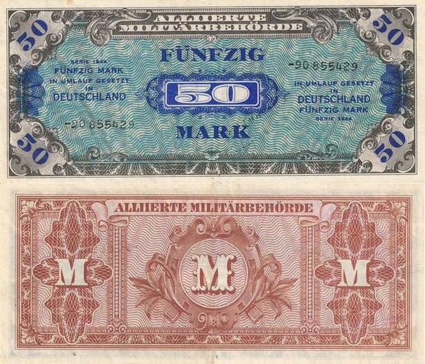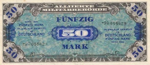 Q4184 Banknote Germany 50 Mark Soviet Printing Alliierte Militarbehorde 1944