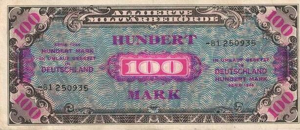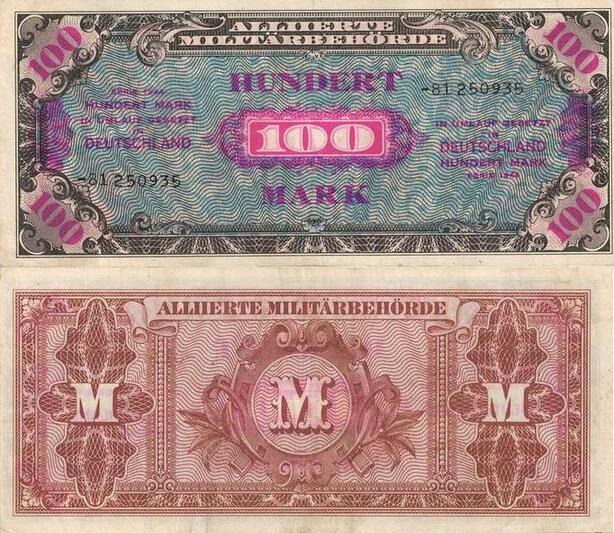 Q4186 Banknote Germany 100 Mark Alliierte Militarbehorde Soviet Printing 1944