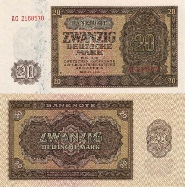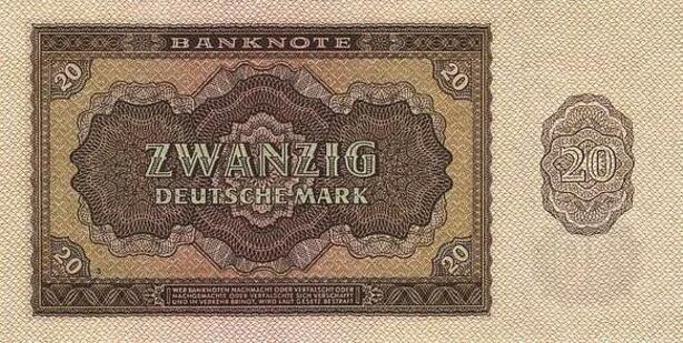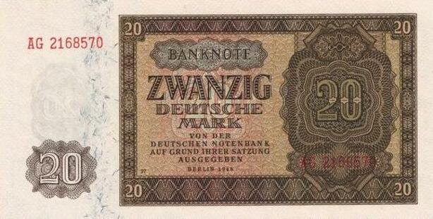 Q4205 Banknote Germany 20 Mark Stylized frame, laurel wreath Berlin 1948