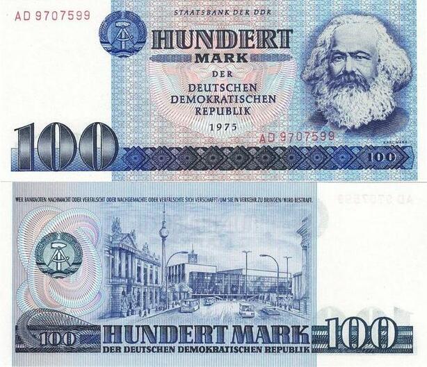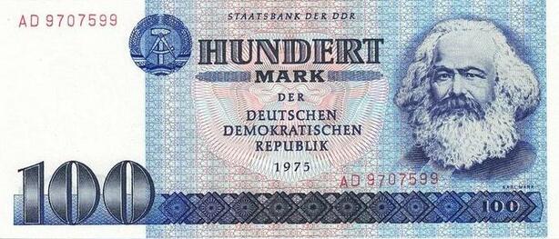 Q4217 Banknote Germany 100 Mark Karl Marx View of a street, DDR 1975 -Offer