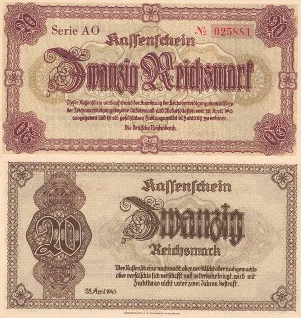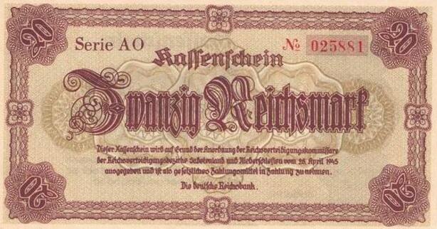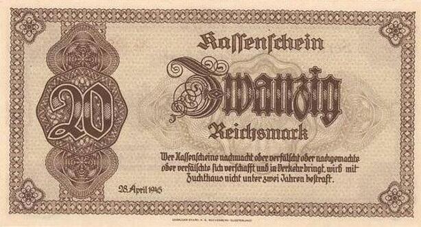 Q4220 Banknote Germany 20 ReichsMark WWII, stylized frames 1945 - M Offer