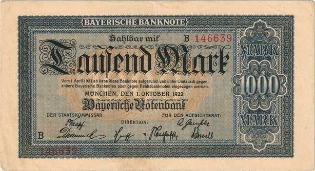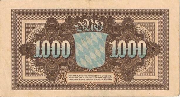 Q4225 Banknote Germany 1000 Mark Bayerische banknote Munich 1922 - M Offer