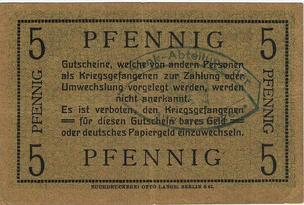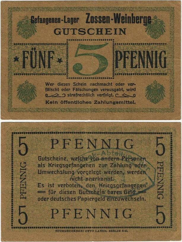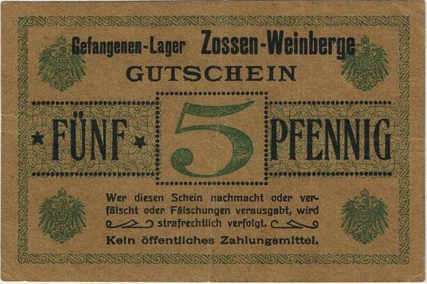 Q4249 Banknote Germany 5 Pfennig Gefangenen-Lager Zossen Weinberge 1914 - 1919