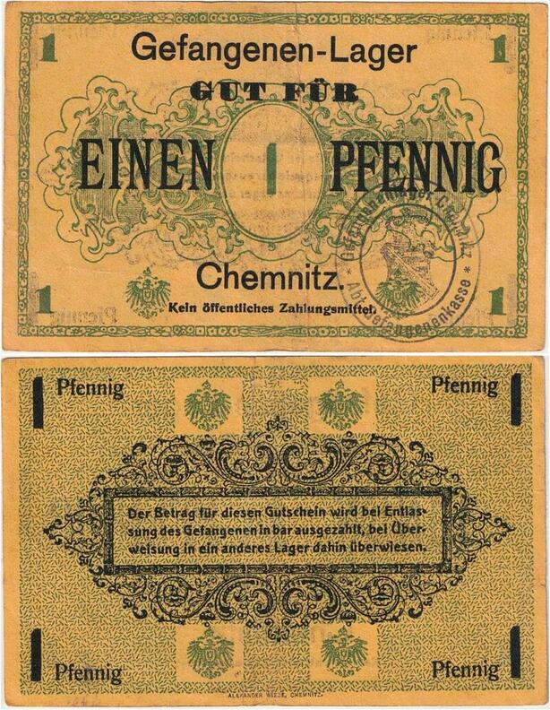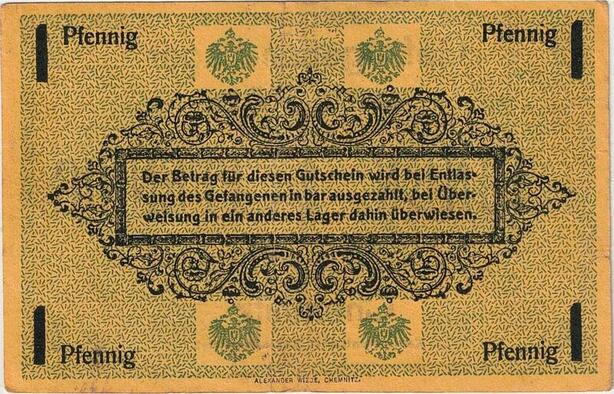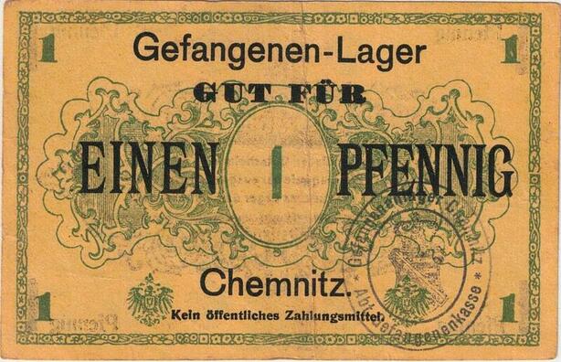 Q4252 Banknote Germany 1 Pfennig Gefangenen-Lager Chemnitz Stamp 1914-1919