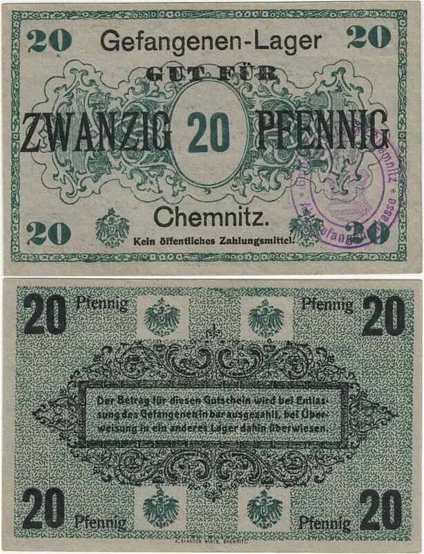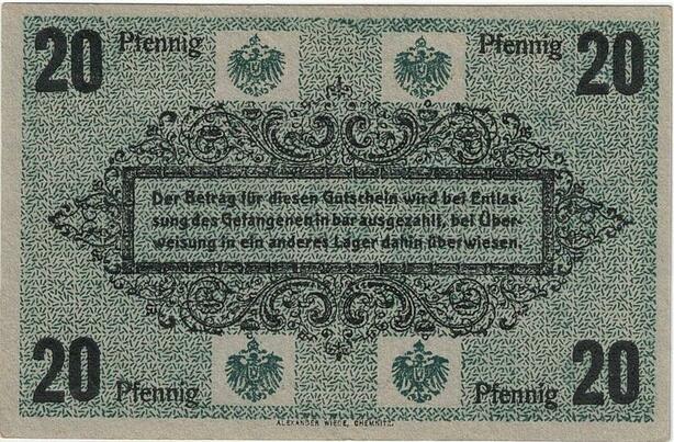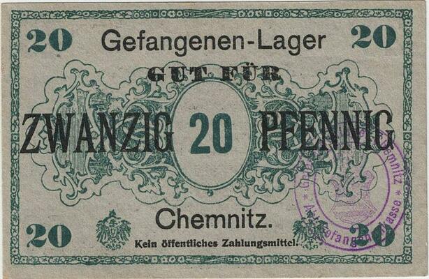 Q4253 Banknote Germany 20 Pfennig Gefangenen-Lager Chemnitz Stamp 1914-1919 AU