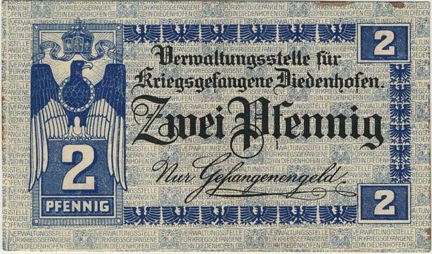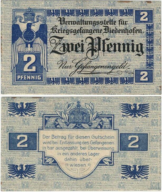 Q4254 Banknote Germany 2 Pfennig Kriegsgefangene Diedenhofen Thionville 1914