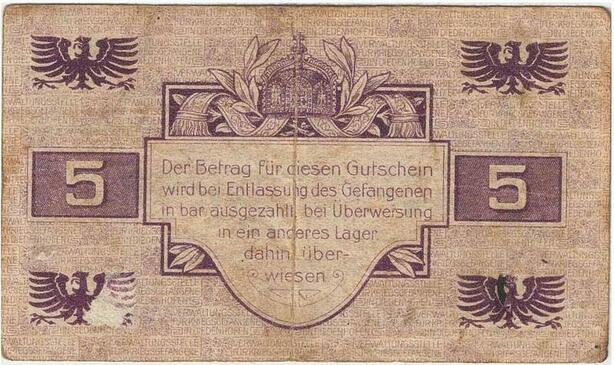 Q4255 Banknote Germany 5 Pfennig Kriegsgefangene Diedenhofen Thionville 1914