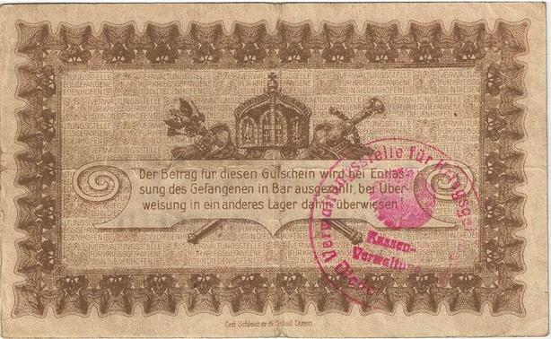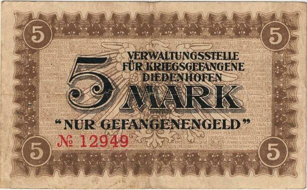 Q4262 Banknote Germany 5 Mark Kriegsgefangene Diedenhofen Thionville 1914-1919