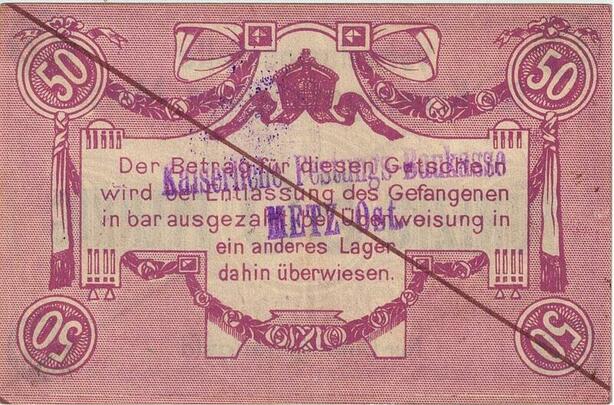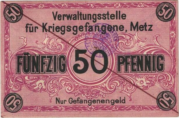 Q4266 Banknote German 50 Pfennig Verwaltungsstelle für Kriegsgefangene Metz 1914