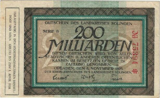 Q4291 Banknote Germany Solingen 200 Milliarden Mark 1923 Notgeld