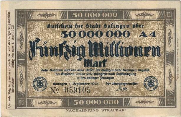 Q4300 Banknote Germany Solingen 50 Milliarden Mark 1923 - Make Offer