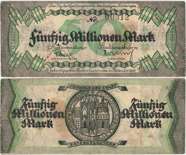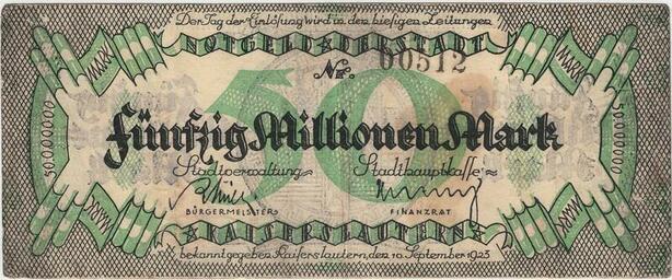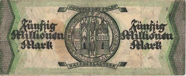 Q4325 Banknote Germany 50 Million Mark Sity seal Kaiserlautern 1923 - Offer