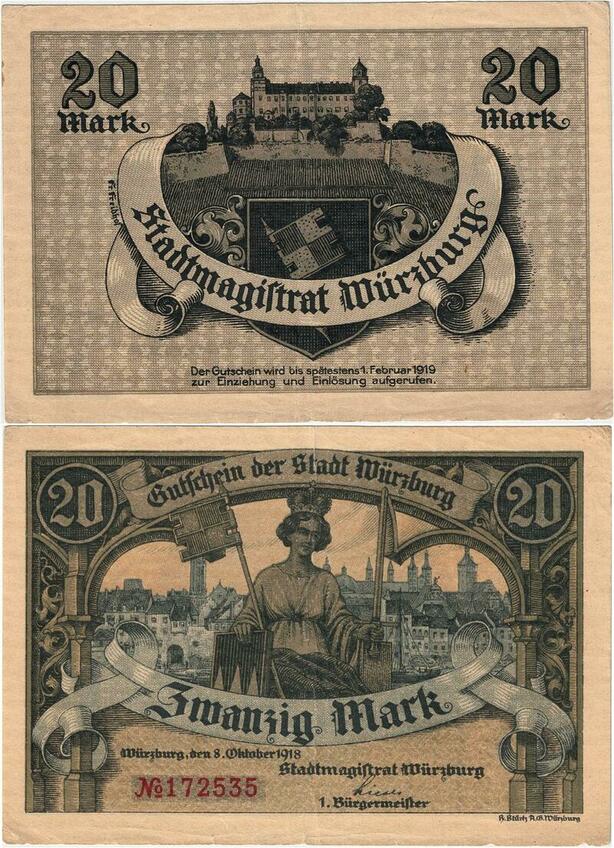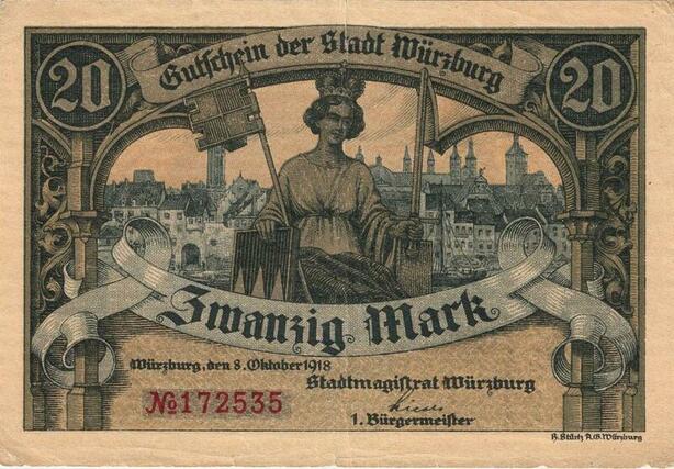 Q4330 Banknote Germany 20 Mark Fortuna Würzburg 1918 - Make Offer