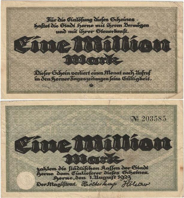 Q4331 Banknote Germany 1000000 Mark Seal Herne 1923 - Make Offer