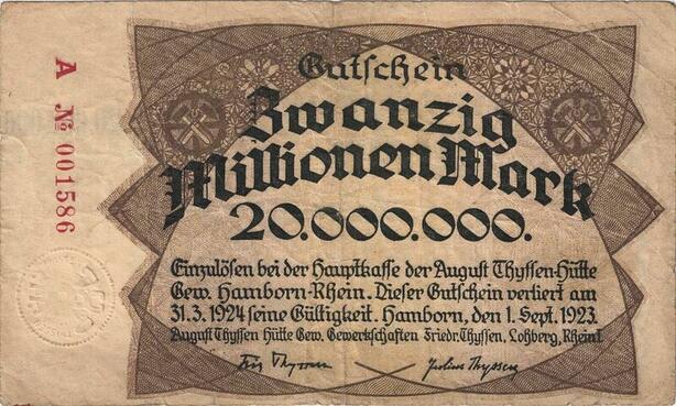 Q4334 Banknote Germany 20000000 Mark Factory Hamborn 1923 - Make Offer
