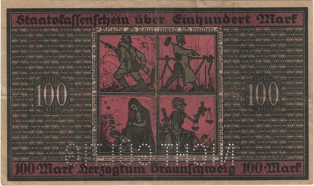 Q4336 Banknote Germany 100 Mark People & death Braunschweig 1918 - M Offer