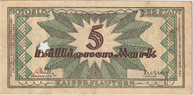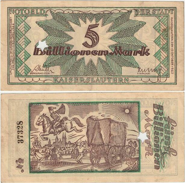 Q4348 Banknote Germany 1000000000000 Mark a rider Kaiserslautern 1923