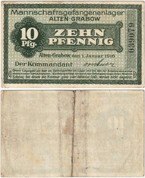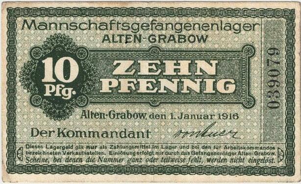 Q4349 Banknote Germany 10 Pfennig signed by the commandant Altengrabow 1916