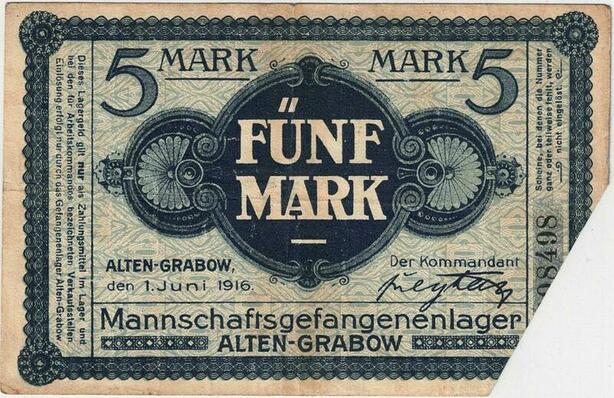 Q4352 Banknote Germany 5 Mark Onesided Altengrabow 1916 - Make Offer