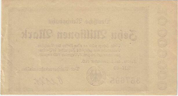 Q4384 Banknote Germany 10 Million Mark Onesided Berlin 1923 - Make Offer