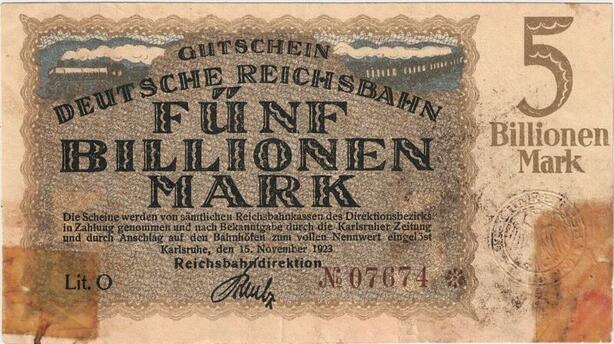 Q4385 Banknote Germany 5 Trillion Mark Train Karlsruhe 1923 - Make Offer