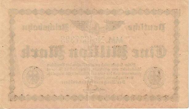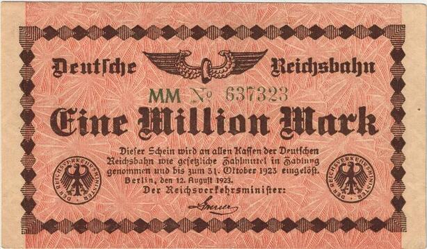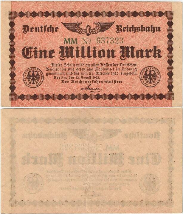 Q4387 Banknote Germany 1 Million Mark Uniface Eagle train Berlin 1923