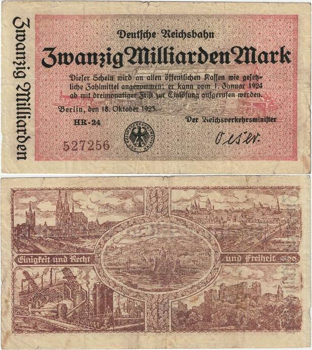 Q4391 Banknote Germany 20 Billion Mark City & factory Berlin 1923