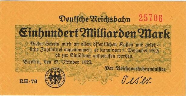Q4392 Banknote Germany 100 Milliards Mark Uniface, eagle Berlin 1923