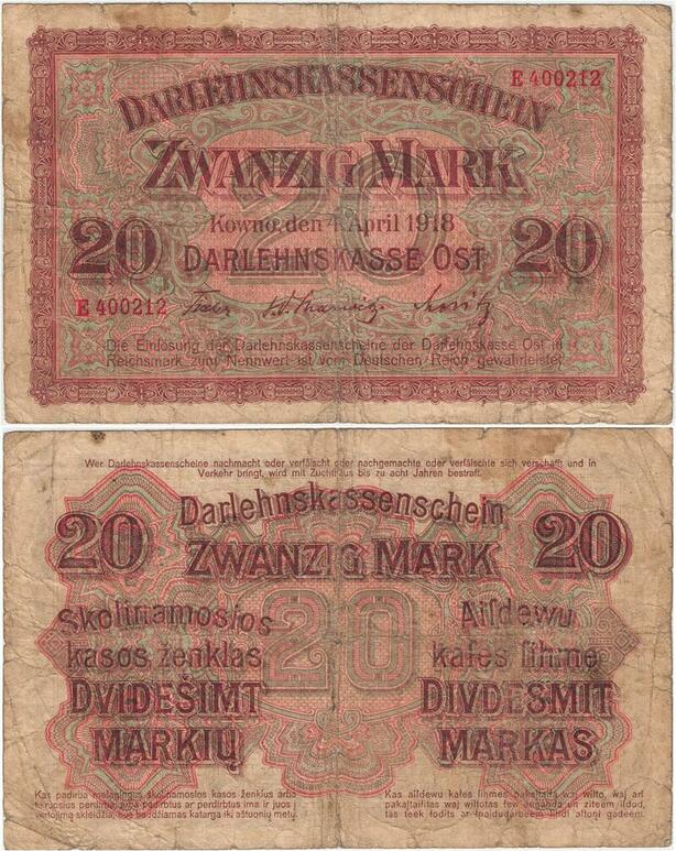 Q4397 Banknote Germany 20 Mark Lithuania Kowno 1918 - Make Offer