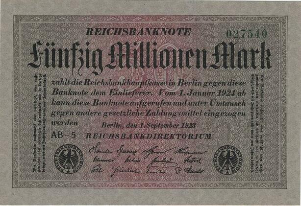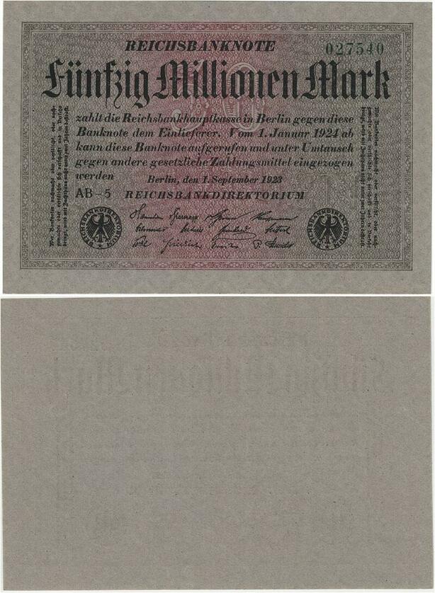 Q4400 Banknote Germany Berlin 50 Millionen Mark Uniface eagles 1923 - M Offer
