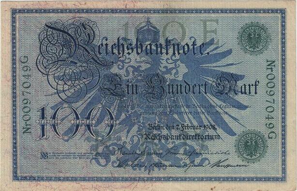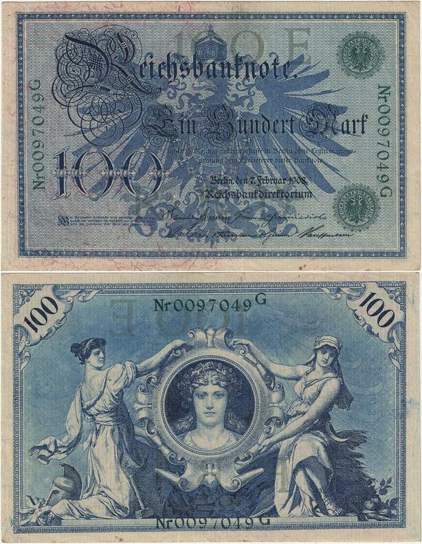 Q4407 Banknote Germany Berlin 100 Mark 3 women, national emblem 1908 - Offer