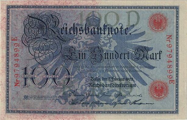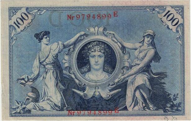 Q4409 Banknote Germany Berlin 100 Mark 3 women, national emblem 1908 - Offer