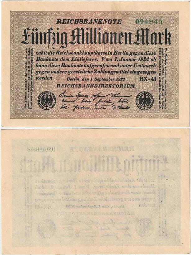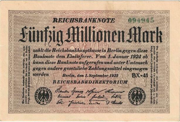 Q4413 Banknote Germany Berlin 50 Millionen Mark Uniface eagles 1923 - Offer