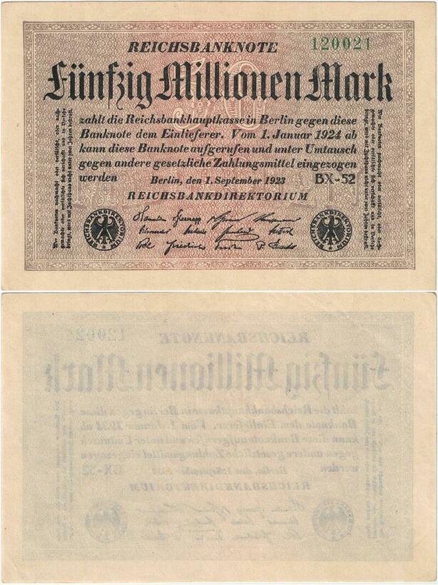 Q4414 Banknote Germany Berlin 50 Millionen Mark Uniface eagles 1923 - M Offer