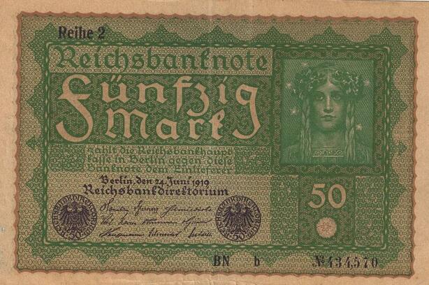 Q4428 Banknote Germany Berlin Weimar Republic 50 Mark 1919 -> Make Offer