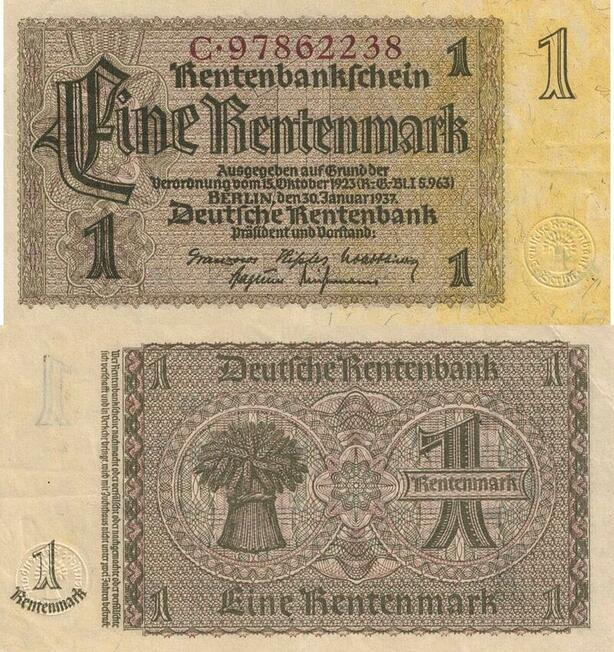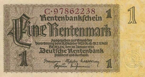 Q4439 Banknote Germany Berlin 1 Mark Rentenmark 1937 AU+ -> Make Offer
