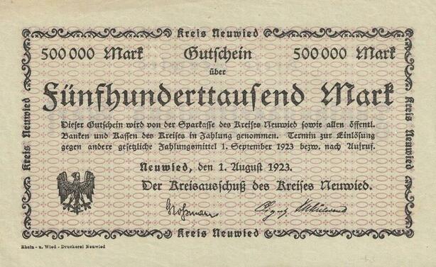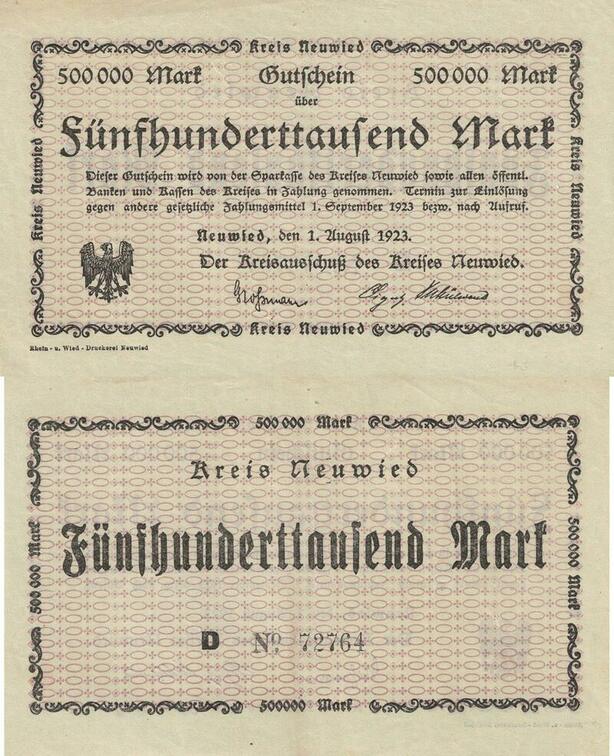 Q4446 Banknote Germany Neuwied Rheinland 500000 Mark 1923 AU -> Make Offer