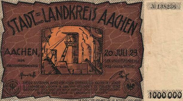 Q4478 Banknote Germany Aachen Landkreis 1 Million Mark Notgeld 1923 - Make Offer