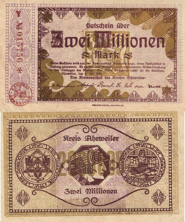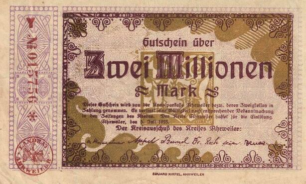 Q4497 Banknote Germany Kreis Ahrweiler 2 Millionen Mark 1923 Notgeld - M Offer