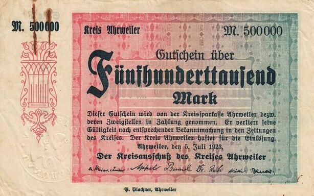 Q4500 Banknote Germany Kreis Ahrweiler 500000 Mark 1923 - Make Offer